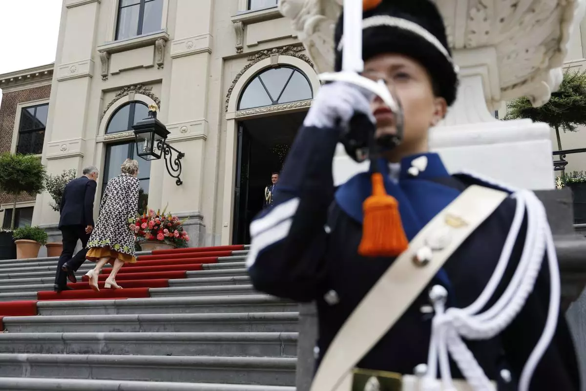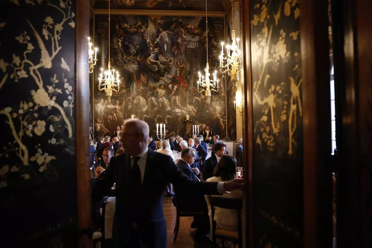 A member of the household staff closes a door as NATO heads of state and government attend a dinner at the Paleis Huis ten Bosch ahead of the NATO summit in The Hague, Netherlands, Tuesday, June 24, 2025. (Remko de Waal, Pool Photo via AP)