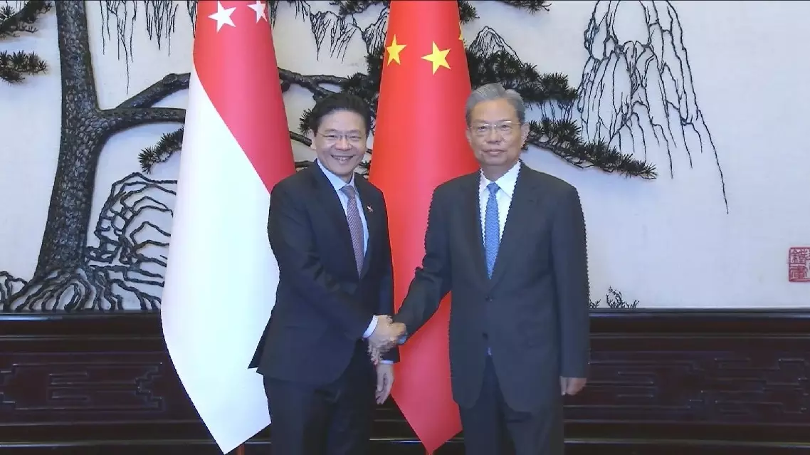 China's top legislator Zhao Leji met with Singaporean Prime Minister Lawrence Wong in Beijing on Tuesday.