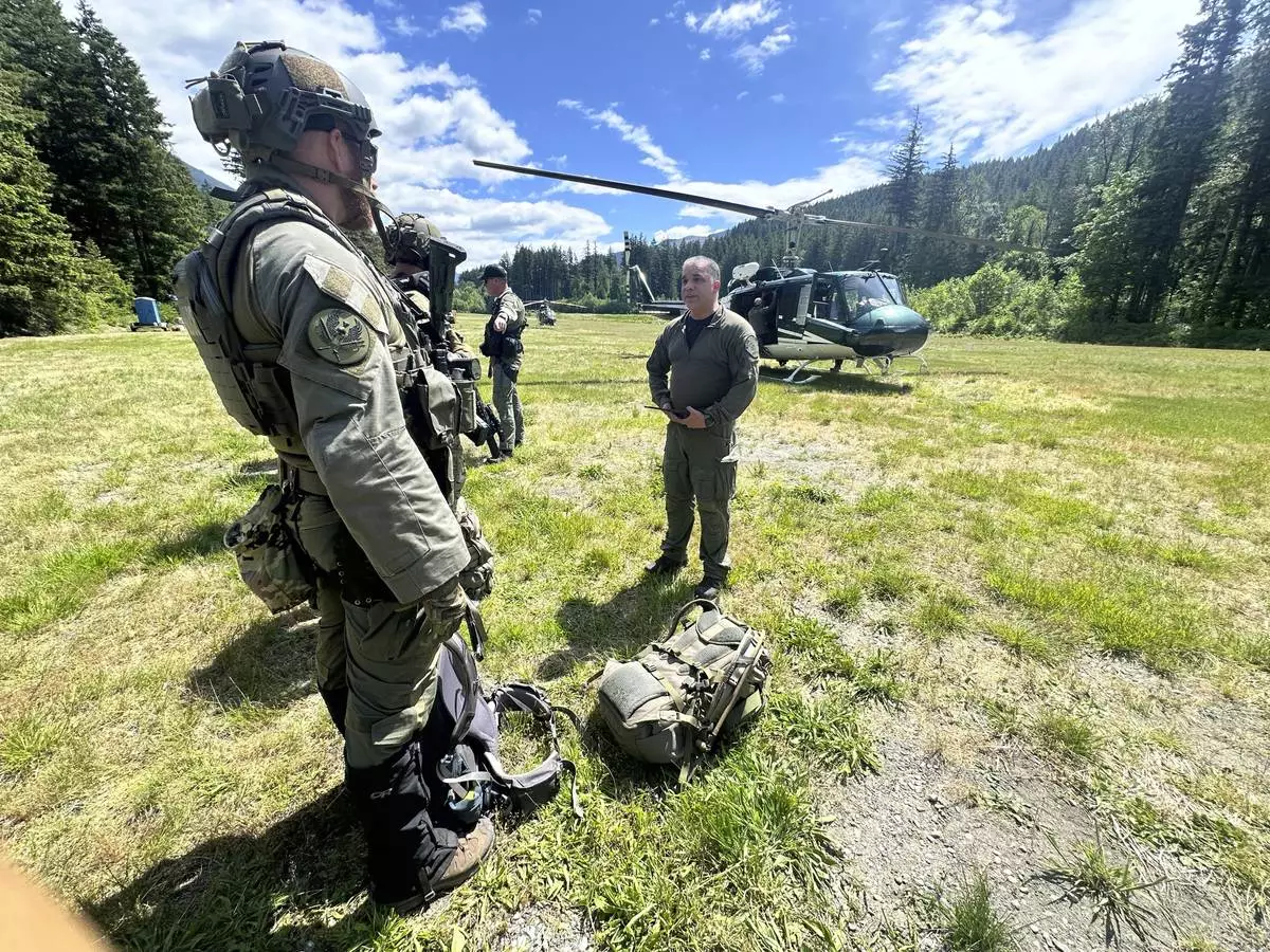 In this handout photo provided by the Snohomish County Sheriff's Office deputies participate in the search for Travis Decker, at an undisclosed location in Washington state, Friday, June 6, 2025. (Snohomish County Sheriff's Office photo via AP)