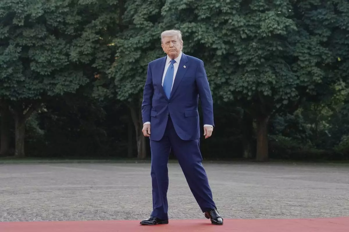 President Donald Trump arrives for a formal dinner at the Paleis Huis ten Bosch ahead of the NATO summit in The Hague, Netherlands, Tuesday, June 24, 2025. (AP Photo/Markus Schreiber)