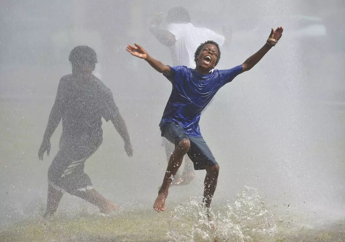 The sprawling June heat wave that has gripped much of the U.S. has people looking for relief in public fountains, inflatable pools, lakes and even the spray from a firetruck.