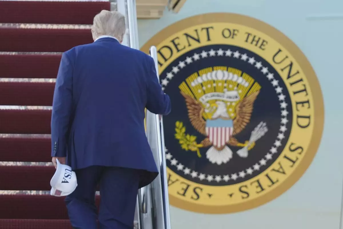 President Donald Trump boards Air Force One, Tuesday, June 24, 2025, at Joint Base Andrews, Md., on his way to The Hague, to join world leaders gathering in the Netherlands for a two-day NATO summit. (AP Photo/Manuel Balce Ceneta)