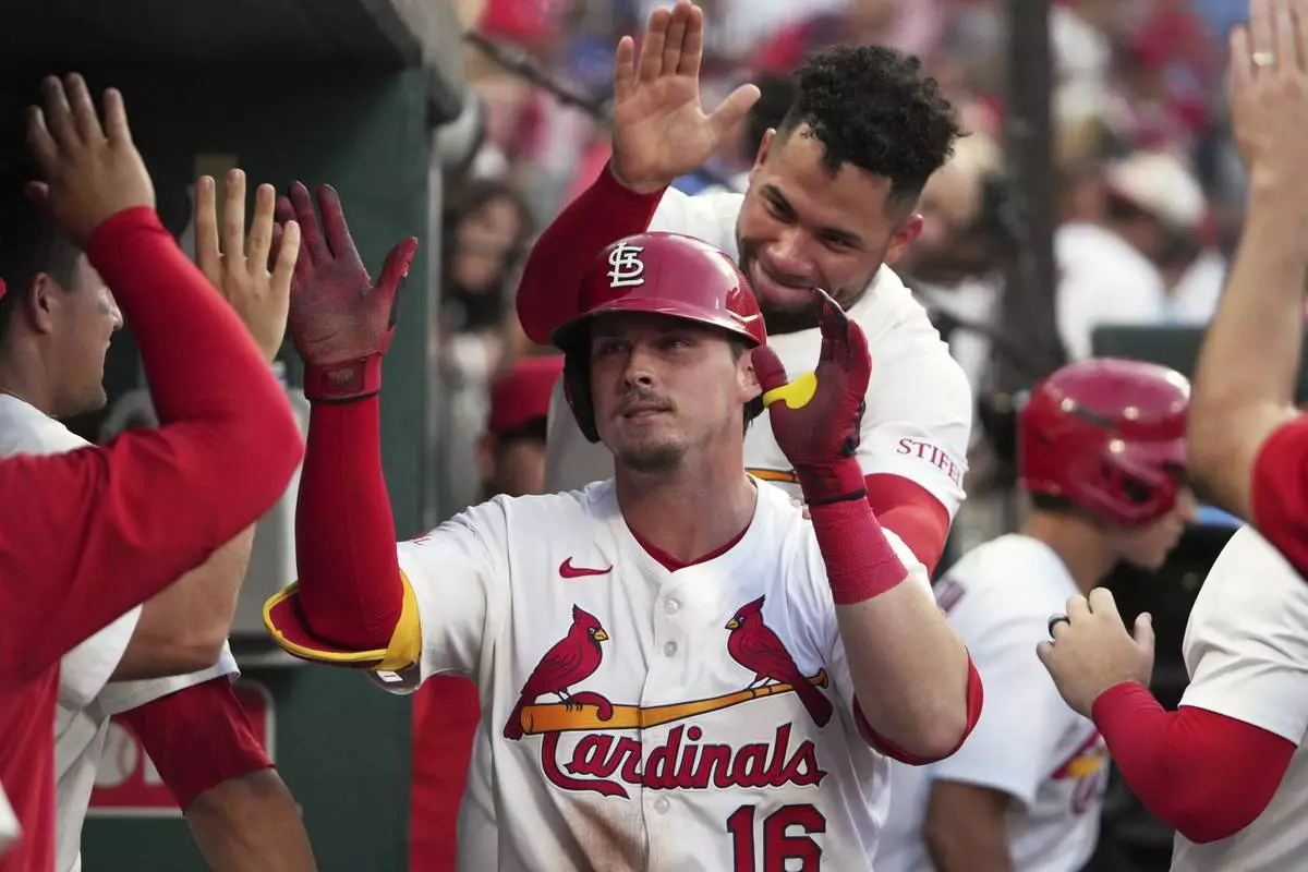 Lars Nootbaar gave the Cardinals a 2-0 lead with a two-run homer in the second and Winn hit a two-run homer in the third.