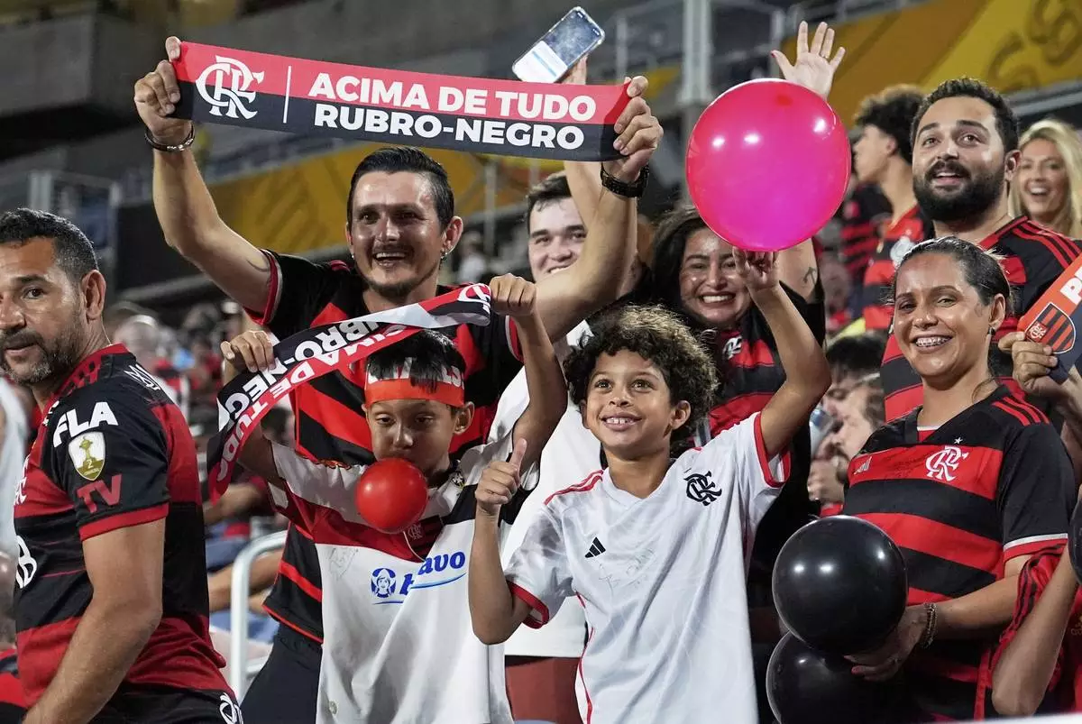 Fans cheer before the Club World Cup Group D soccer match between Los Angeles FC and Flamengo in Orlando, Fla., Tuesday, June 24, 2025. (AP Photo/John Raoux)