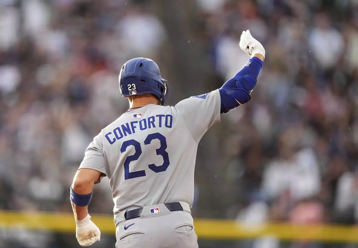 Trailing 2-0, the Dodgers got their bats cranked up in a six-run fourth inning. Conforto sent a knuckle-curve from Germán Márquez (3-9) over the fence in right.