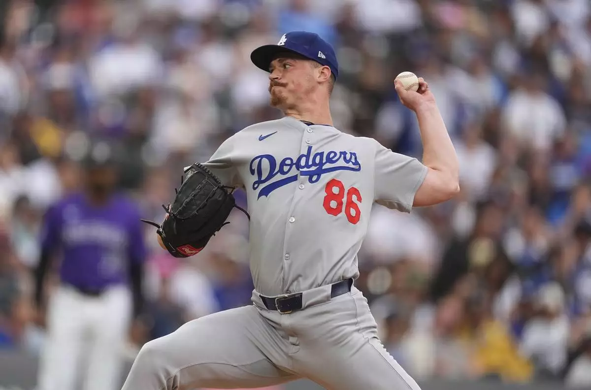 Los Angeles Dodgers starting pitcher Jack Dreyer works against the Colorado Rockies in the first inning of a baseball game Tuesday, June 24, 2025, in Denver. (AP Photo/David Zalubowski)