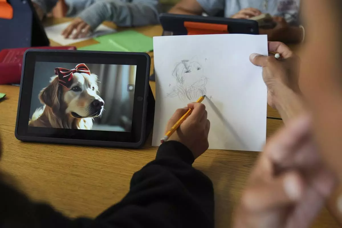 In suburban Chicago, middle school art teacher Lindsay Johnson said she uses only AI programs vetted by her school and deemed safe to use with minors, for data privacy and other concerns. To ensure students feel confident in their skills, she said she brings the technology in only for later stages of projects.