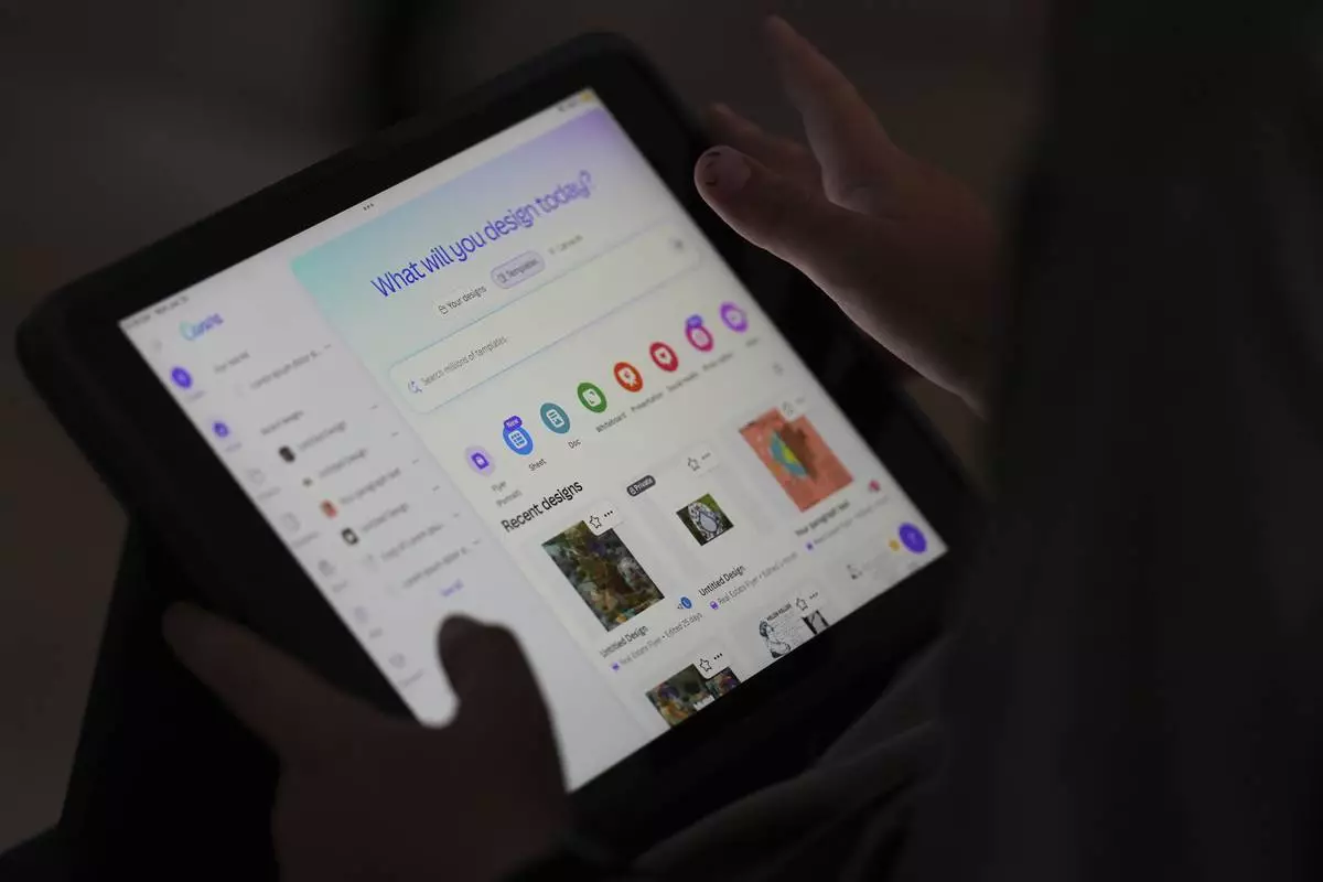 CORRECT PROGRAM NAME: A student is taught how to ask Canva for help during a summer class at Roosevelt Middle School, Wednesday, June 25, 2025, in River Forest, Ill. (AP Photo/Nam Y. Huh)
