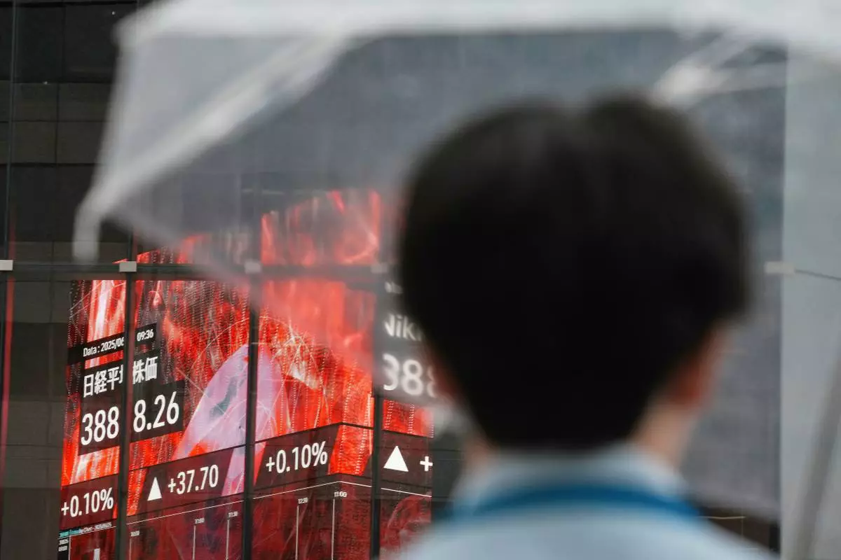 A person looks at an electronic stock board showing Japan's Nikkei index at a securities firm Wednesday, June 25, 2025, in Tokyo. (AP Photo/Eugene Hoshiko)