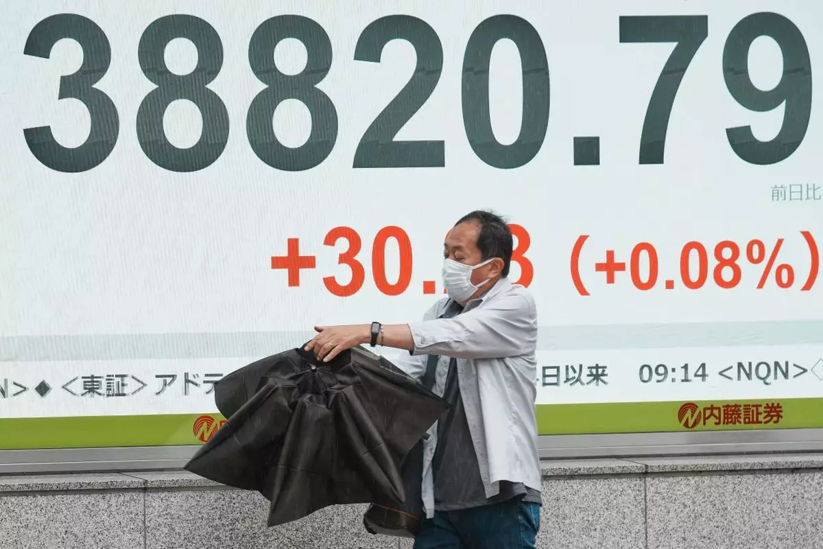 A person walks in front of an electronic stock board showing Japan's Nikkei index at a securities firm Wednesday, June 25, 2025, in Tokyo. (AP Photo/Eugene Hoshiko)