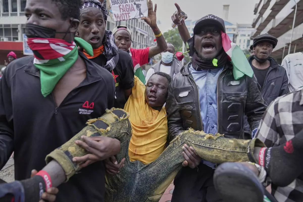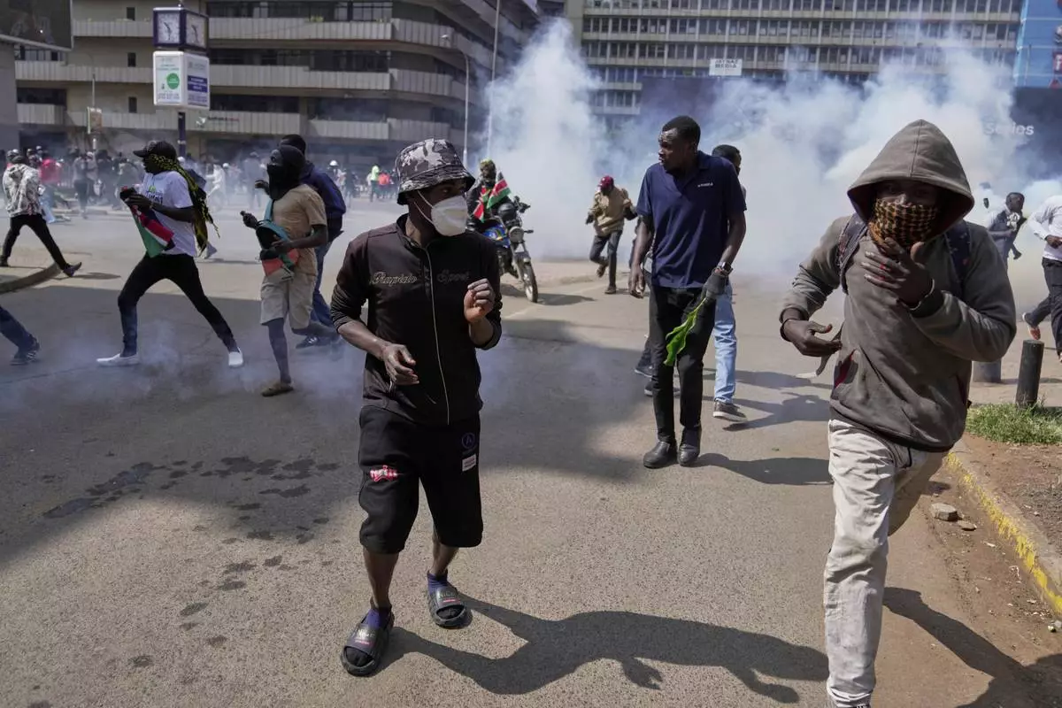 Parliament and the president’s office in Kenya’s capital, Nairobi, were barricaded with razor wire, with all access roads blockaded by police. Thousands of protesters clashed with police who hurled tear gas canisters and fired rounds and wielded batons, leaving several people injured.