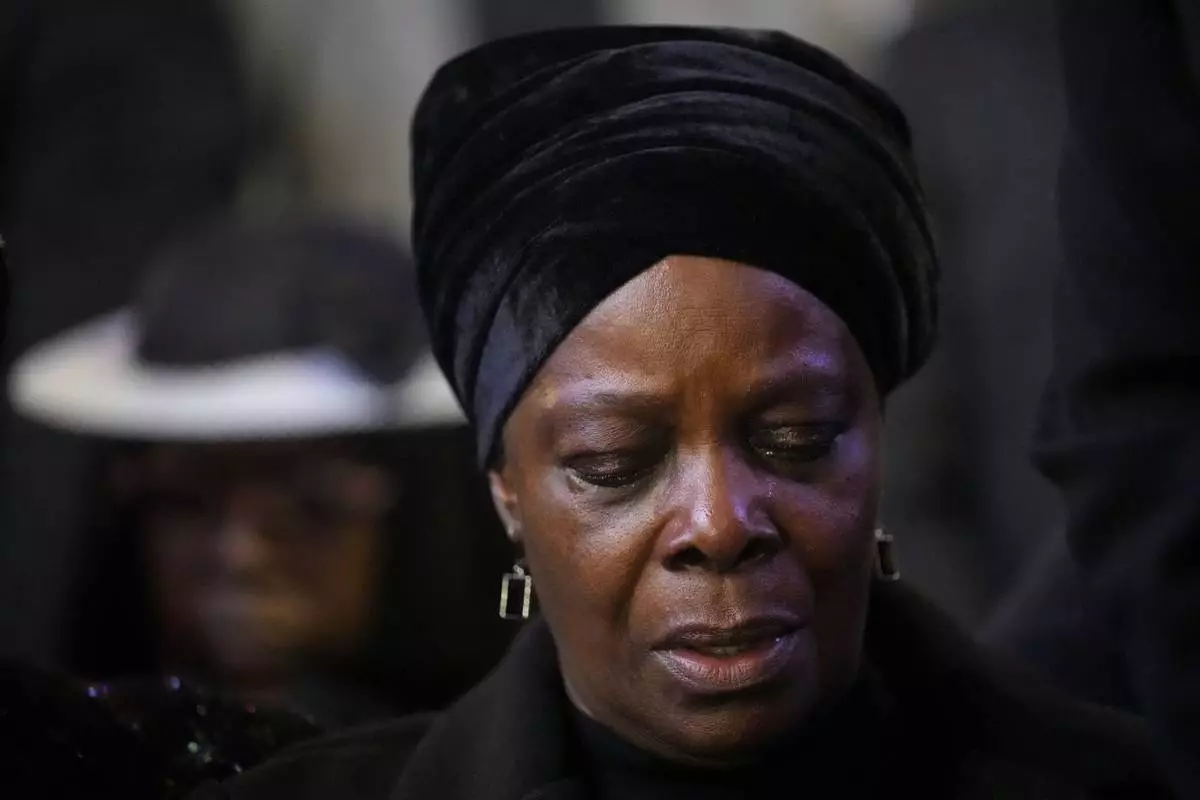 Esther Lungu, widow of Zambia's former President Edgar Lungu, attends a Mass, at the Cathedral of Christ the King, in Johannesburg, South Africa, Wednesday, June 25, 2025. (AP Photo/Themba Hadebe)