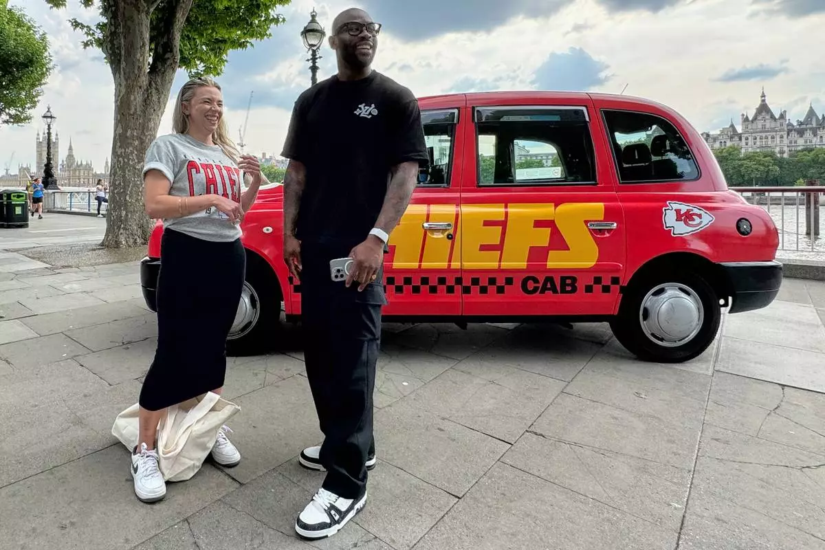 A day that began meeting with local agencies in the NFL’s glass-enclosed eighth-floor office overlooking Leicester Square ended along the banks of the Thames, where a “Chiefs cab” was the meeting point to surprise a local fan with a ticket giveaway.