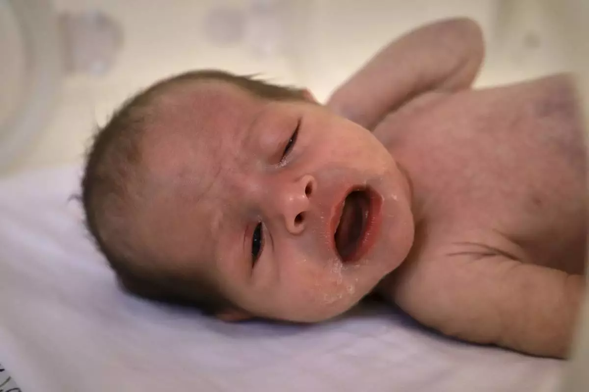 A mother watches as her prematurely born baby is examined at the neonatal intensive care unit of Nasser Hospital in Khan Younis, southern Gaza Strip, Thursday, June 19, 2025. (AP Photo/Mariam Dagga)