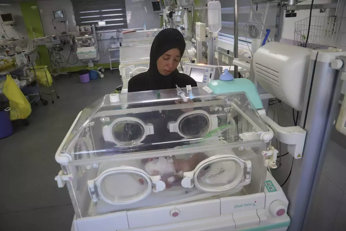 KHAN YOUNIS, Gaza Strip (AP) — Seham Fawzy Khodeir watches as her son lies inside a dilapidated incubator and listens to his faint cry, mixed with the muted sound of the equipment.