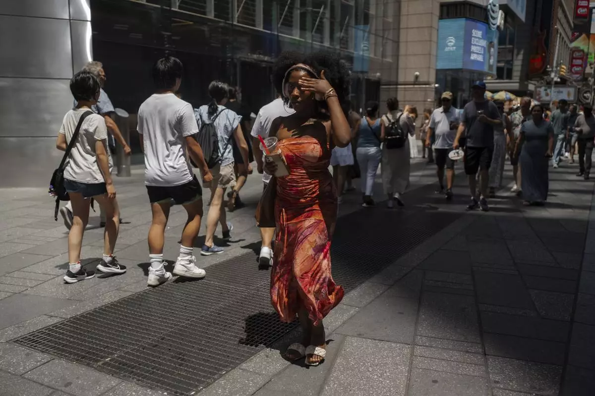 A woman wipes her brow during a heatwave on Tuesday, June 24, 2025, in New York. (AP Photo/Olga Fedorova)