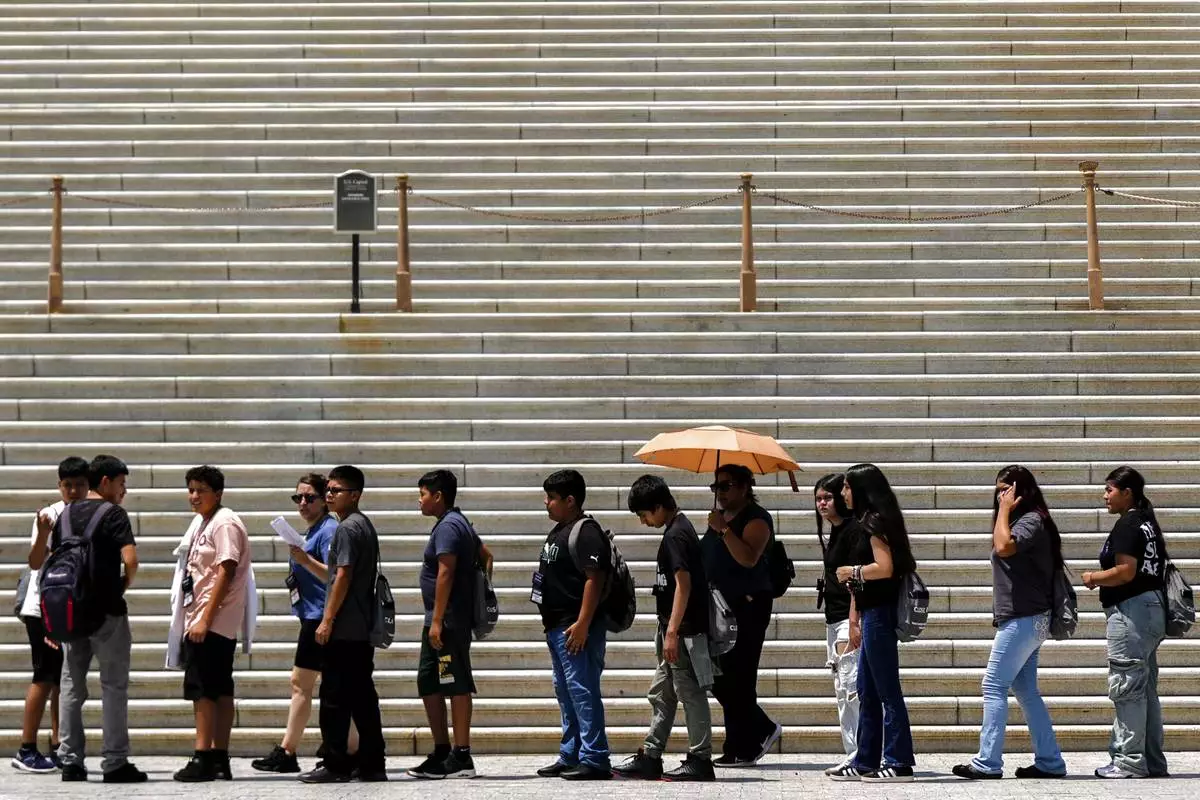 A person uses an umbrella to shield themselves from the sun Wednesday, June 25, 2025, outside the U.S. Capitol in Washington. (AP Photo/Julia Demaree Nikhinson)