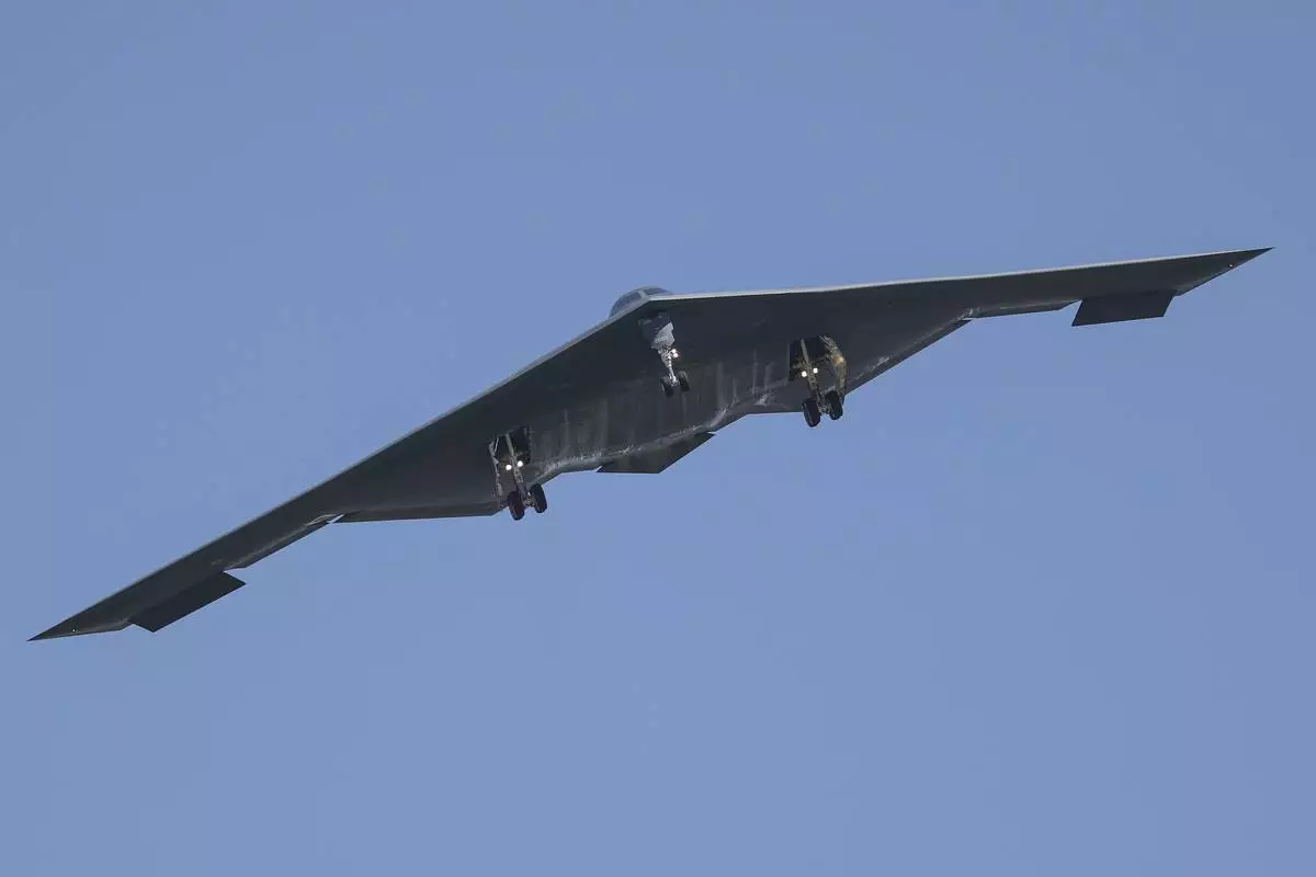 A B-2 bomber arrives at Whiteman Air Force Base Mo., Sunday, June 22, 2025. (AP Photo/David Smith)