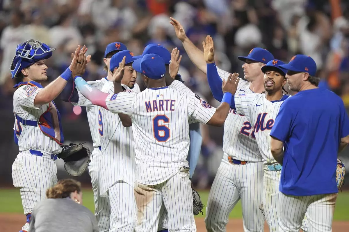 Brett Baty and Brandon Nimmo each singled home a run during the rally. Starling Marte and Francisco Lindor both had a sacrifice fly.