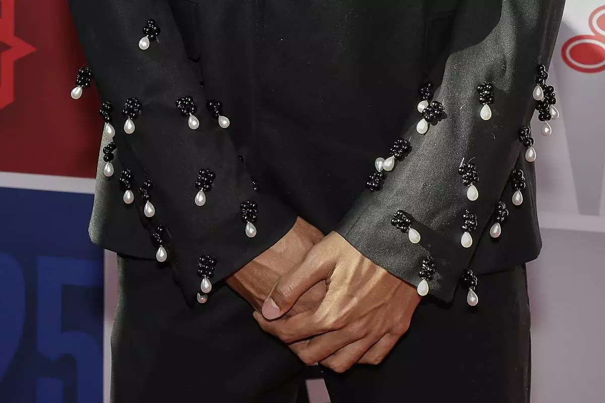 Noa Essengue arrives for the first round of the NBA basketball draft, Wednesday, June 25, 2025, in New York. (AP Photo/Adam Hunger)