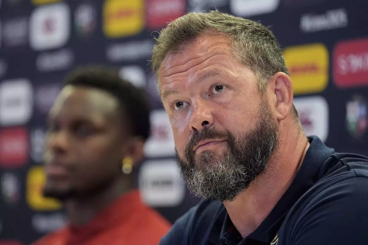 British Lions Head Coach Andy Farrell listens, during a media day at the Aviva Stadium in Dublin, Ireland, Wednesday June 18, 2025. (Brian Lawless/PA via AP)