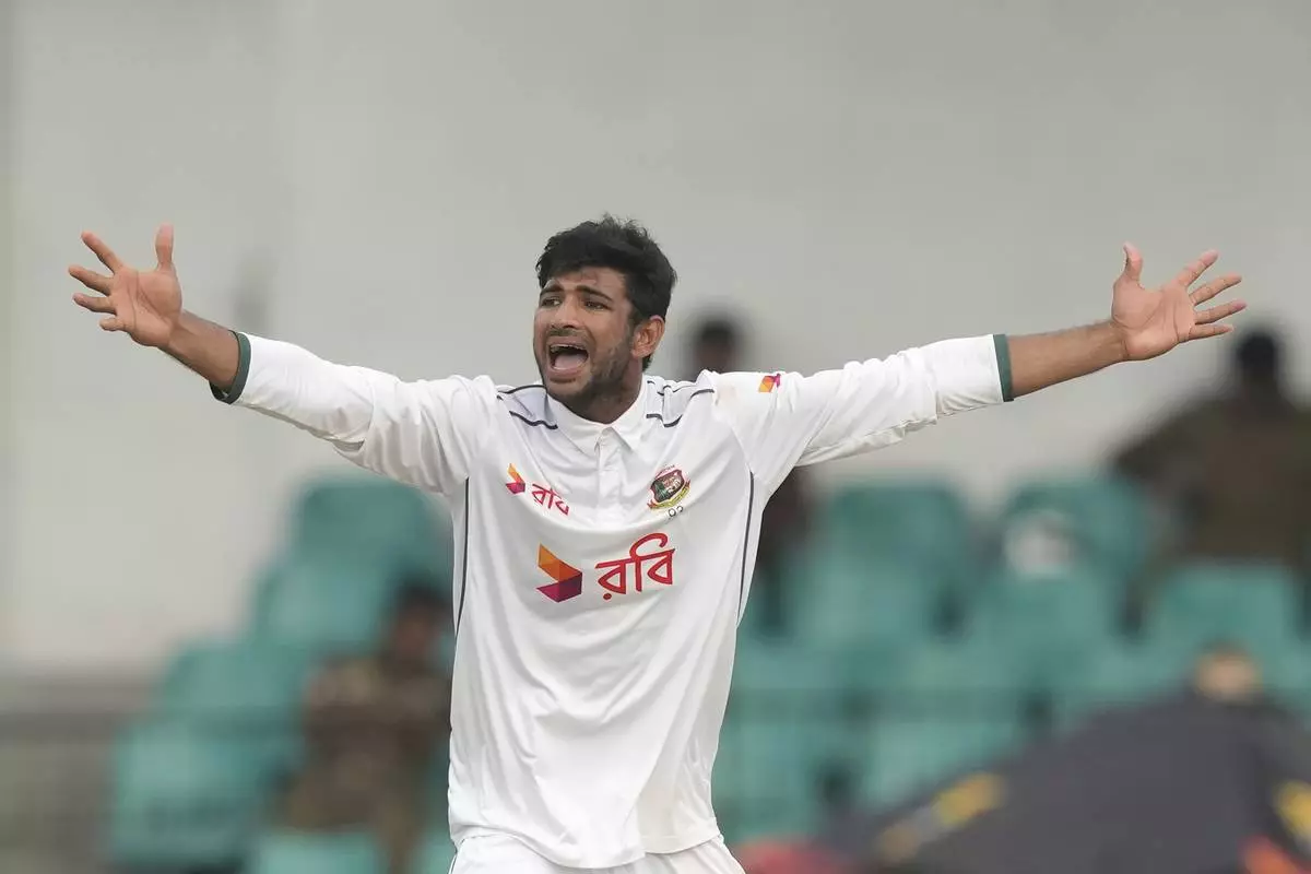 Bangladesh's Nayeem Hasan appeals for the wicket of Sri Lanka's Dinesh Chandimal during the second day of the second cricket test match between Sri Lanka and Bangladesh in Colombo, Sri Lanka, Thursday, June 26, 2025. (AP Photo/Eranga Jayawardena)