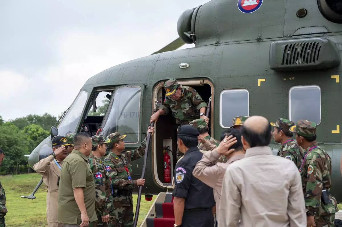 Hun Sen, who ruled Cambodia for nearly four decades, was seen wearing a military uniform, shaking hands with military commanders and government officials who waited to greet him as he got off a military helicopter. It was the first time that he paid a visit to the border since the latest conflict was triggered. Cambodian Prime Minister Hun Manet visited the troops and civilians at the border on Monday.