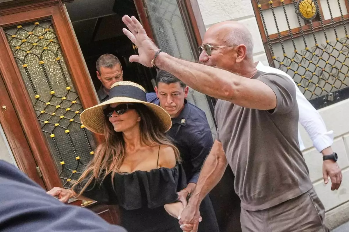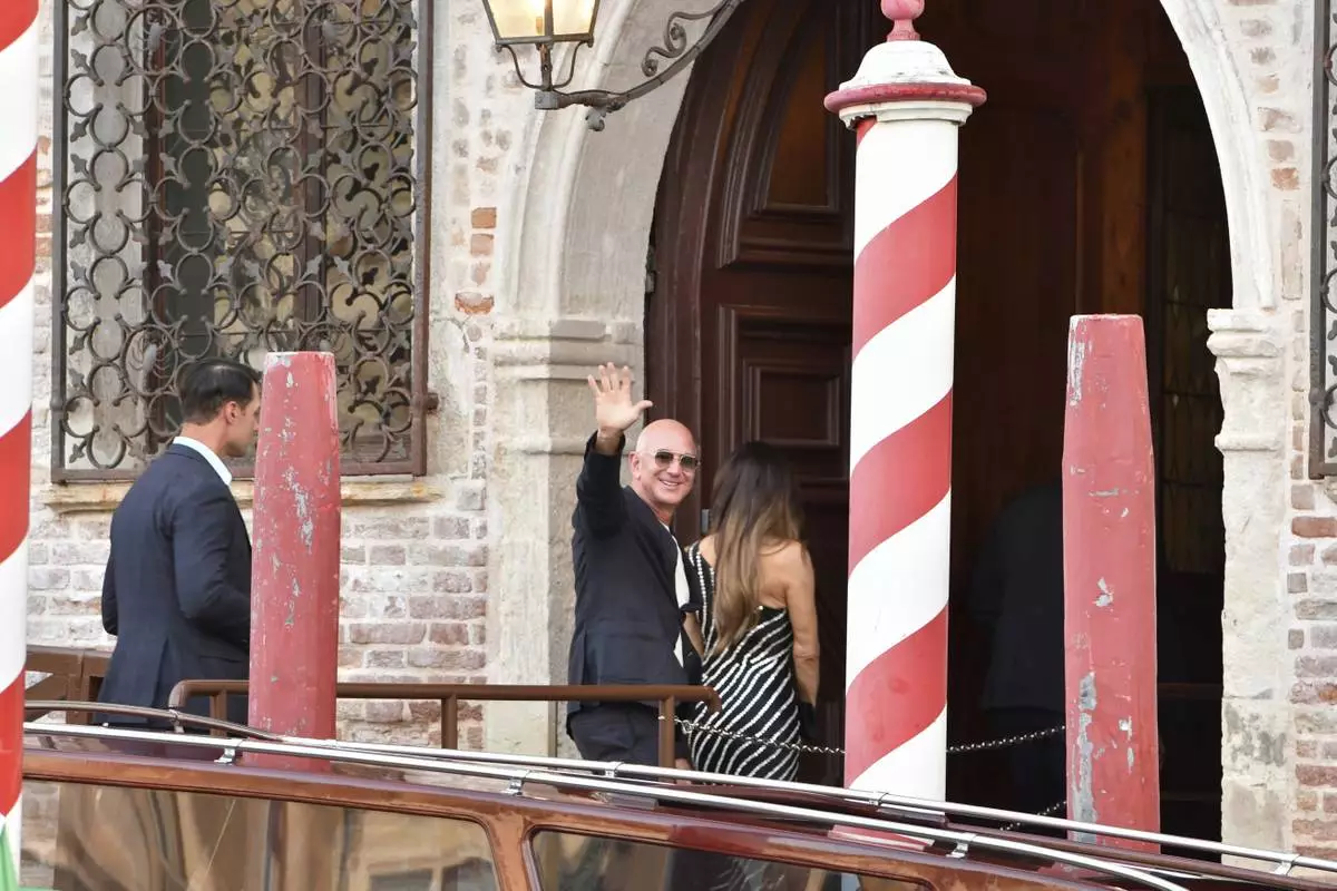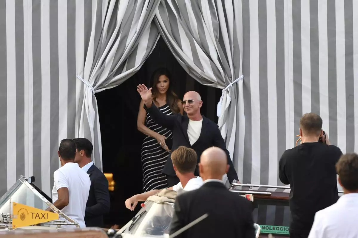 A string of water taxis cut through the lagoon to bring Bezos, Sánchez Bezos and their guests to the tiny San Giorgio island, across the lagoon basin from St. Mark’s Square, where the couple held their private ceremony. Paparazzi in their own boats followed close behind in a controlled chase, trying to capture the couple and their guests on camera, as police on personal watercraft patrolled a no-go zone.