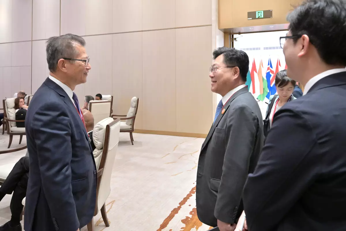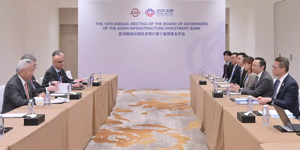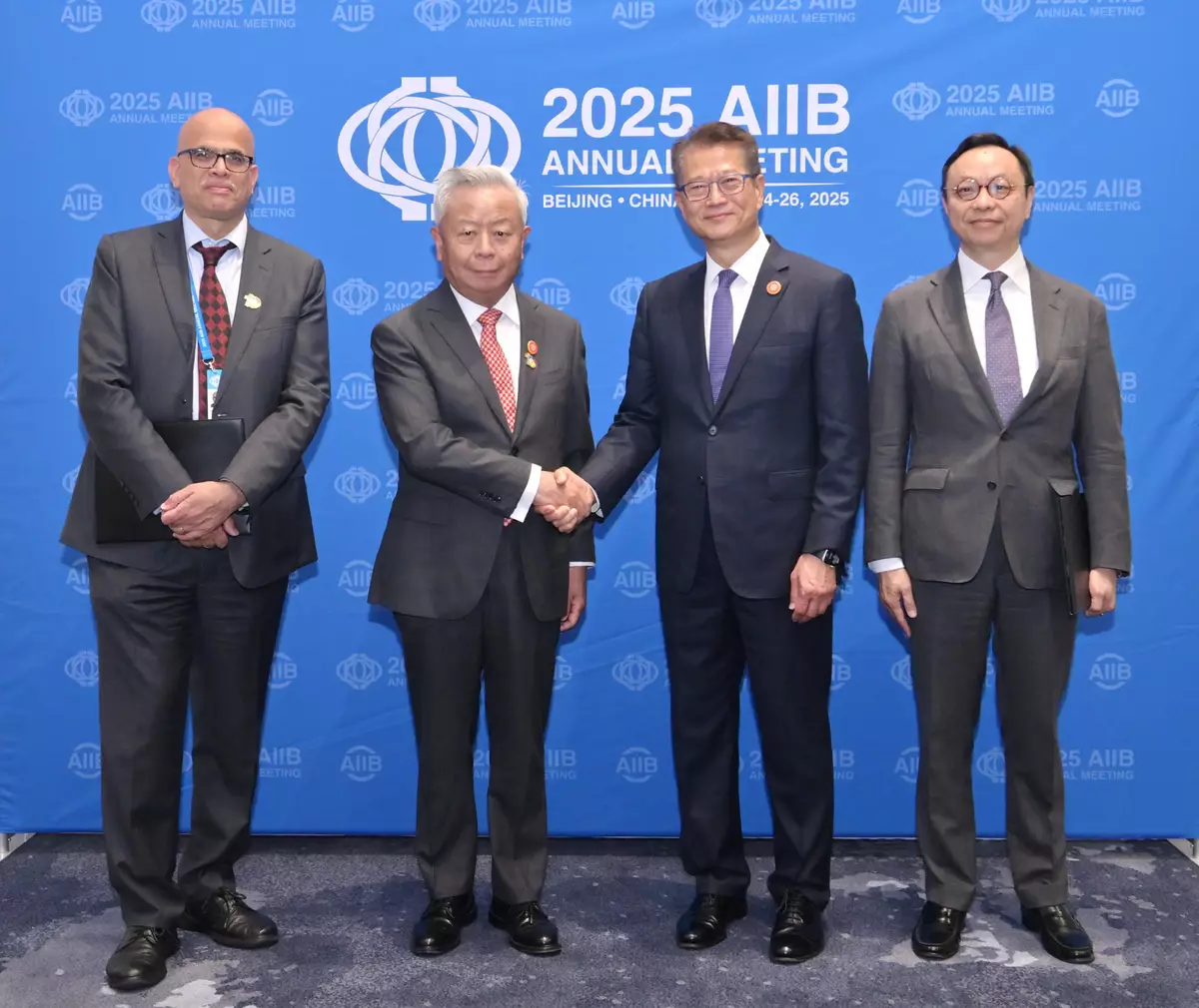 The Financial Secretary, Mr Paul Chan, attended the 10th Annual Meeting of the Board of Governors of the Asian Infrastructure Investment Bank (AIIB) in Beijing today (June 26). He also held separate meetings with the Minister of Finance, Mr Lan Fo'an, and the President of the AIIB, Mr Jin Liqun.