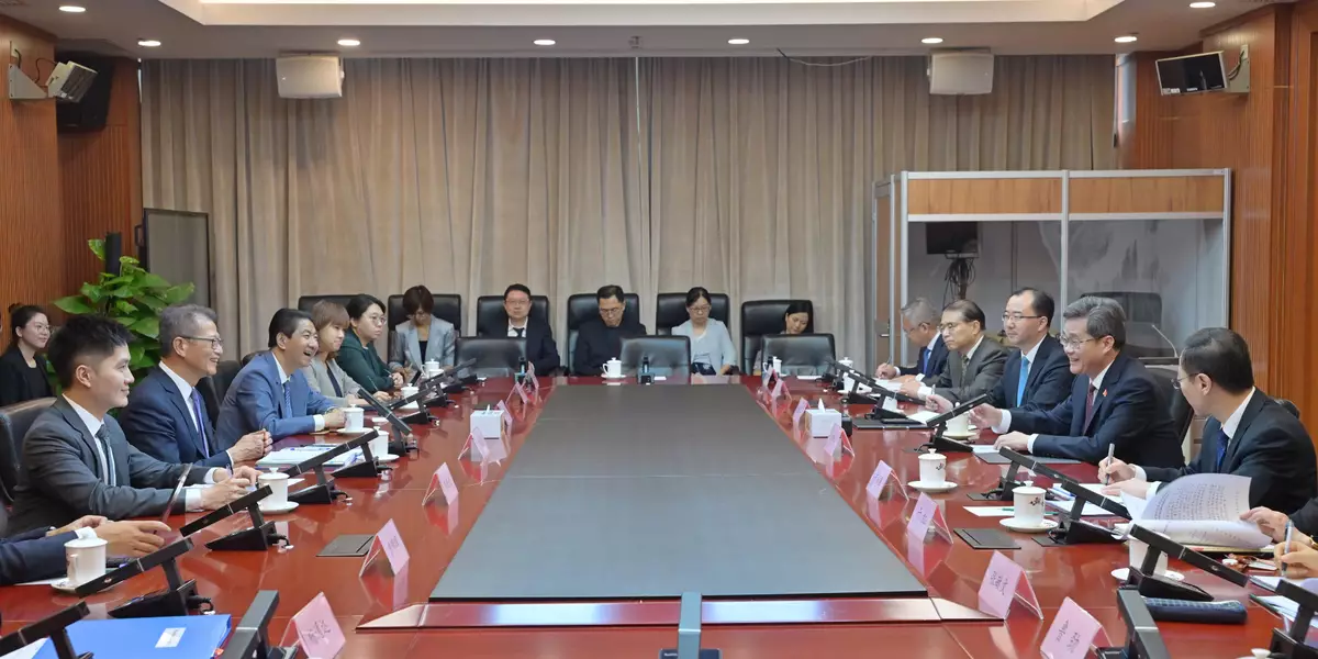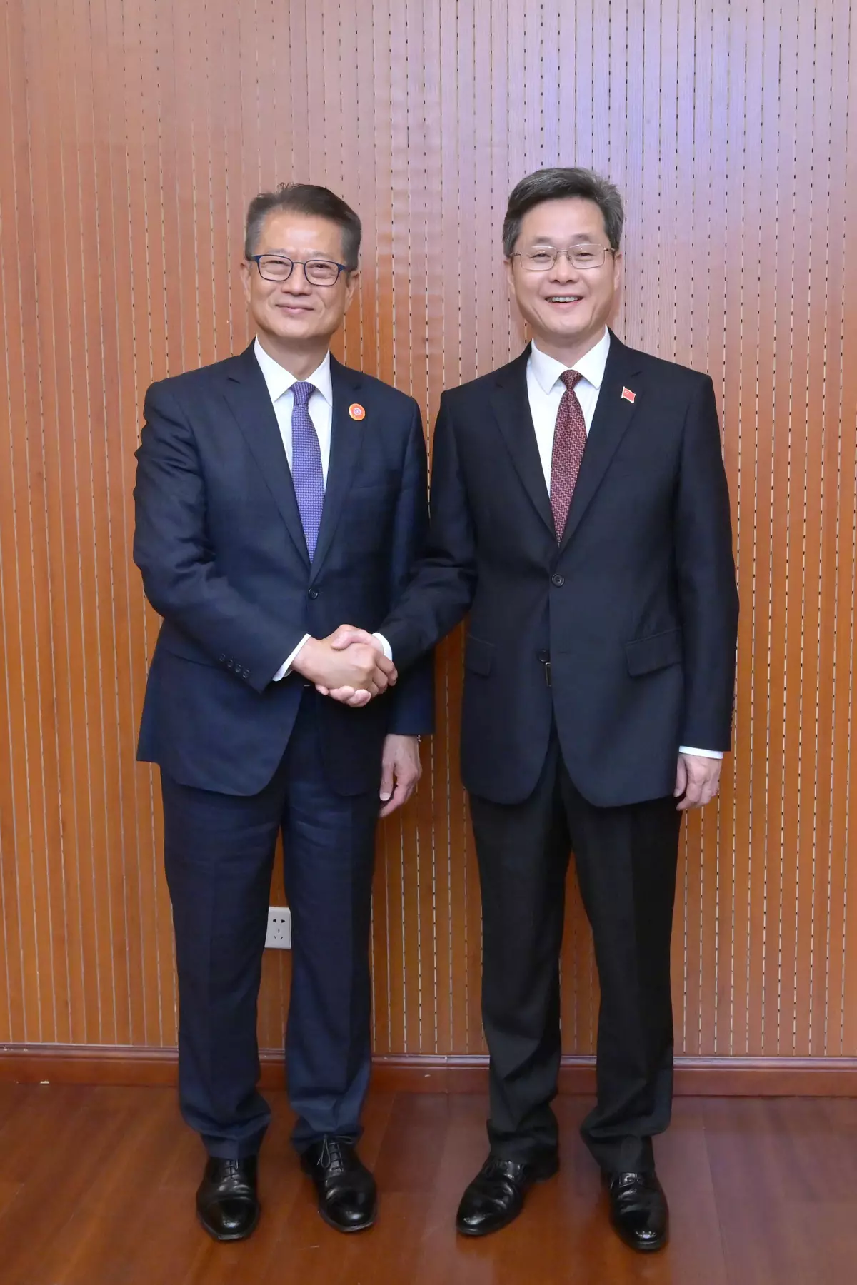 Subsequently, Mr Chan called on the Minister of Finance, Mr Lan Fo'an, where both parties exchanged in-depth views on the economic and social development of the Mainland and Hong Kong. Mr Chan briefed Mr Lan on Hong Kong's latest developments in financial markets, innovation and technology, and public finance. He highlighted that, with Hong Kong's financial market advancing steadily and international investors' confidence strengthening, the Hong Kong Special Administrative Region Government will continue to fully support the issuance of RMB Sovereign Bonds in Hong Kong. Efforts will also be made to enrich investment products and risk management tools, enhance RMB liquidity, and improve financial infrastructure to build a more prosperous offshore RMB business ecosystem.