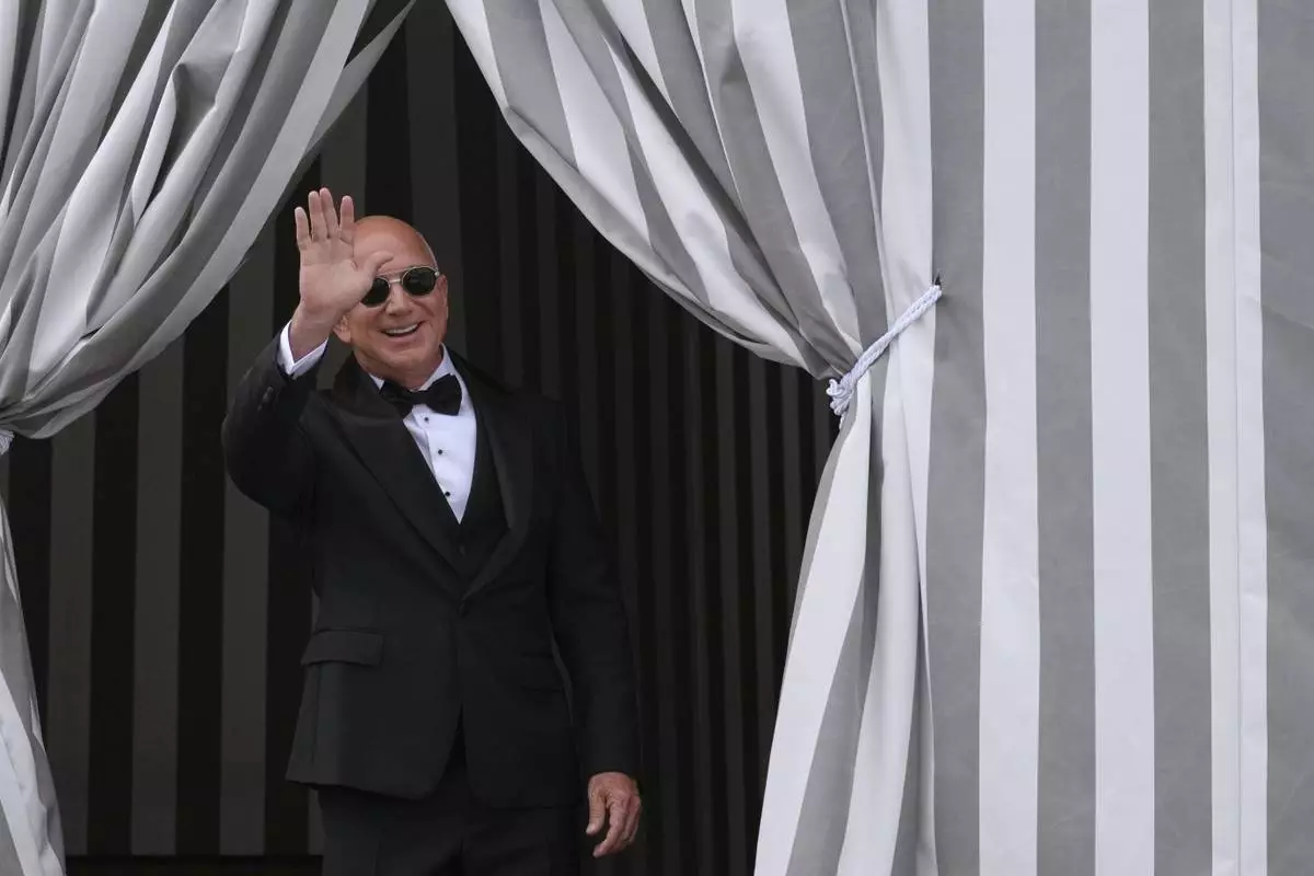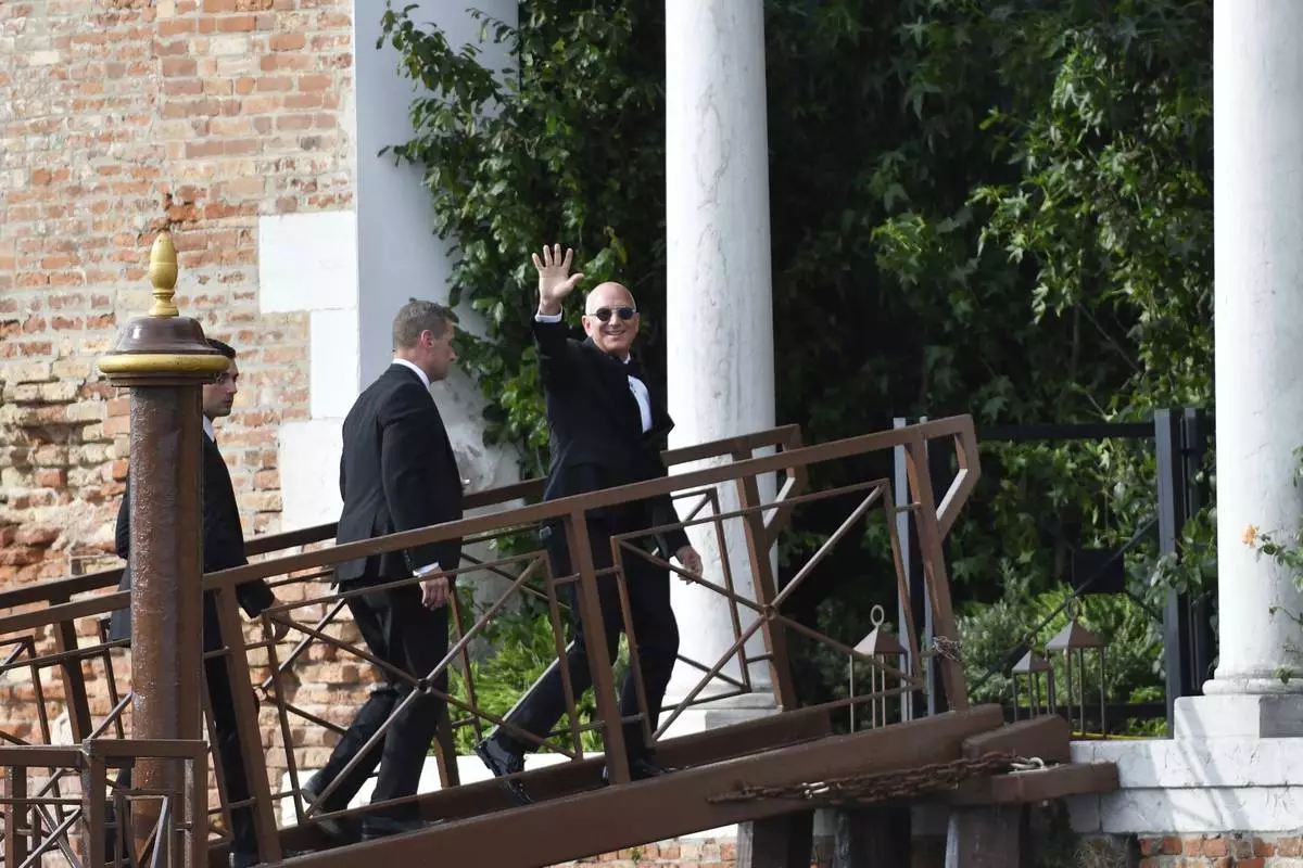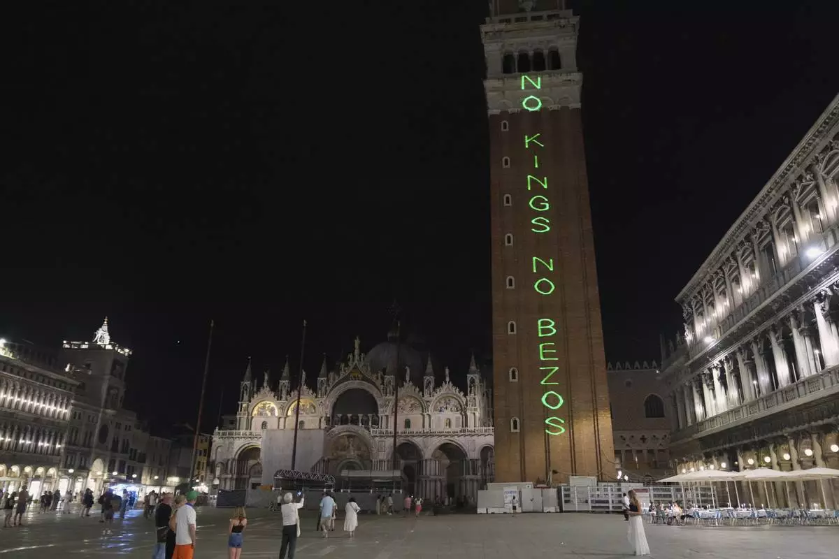 VENICE, Italy (AP) — As a starry guest list of celebrities descends on Venice, Italy, for the weekend wedding of Amazon founder Jeff Bezos and Lauren Sánchez, activists have united under the banner “No Space for Bezos” to protest the nuptials. Protesters were drawing attention to overtourism, high housing costs and the constant threat of climate-induced flooding in the lagoon city.