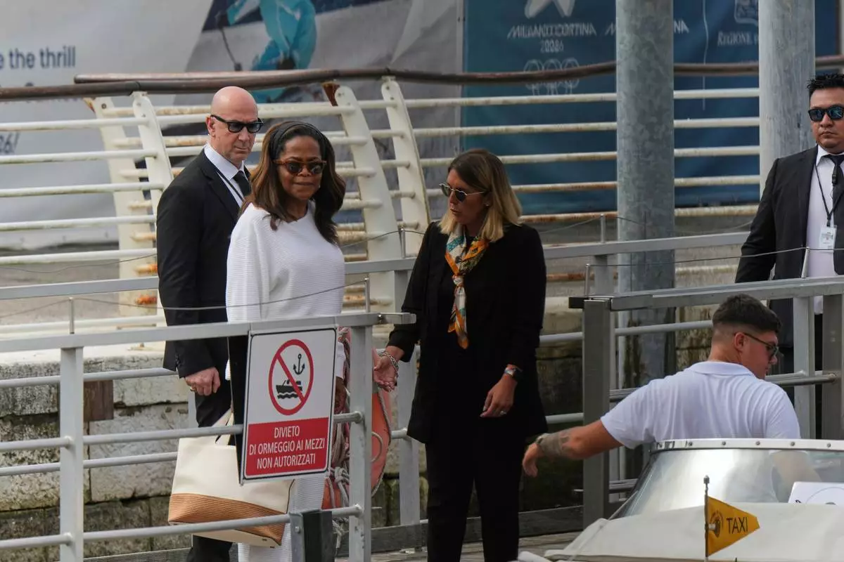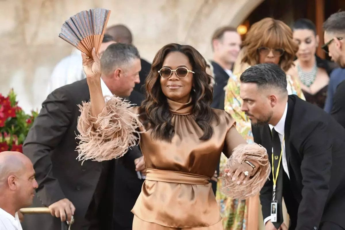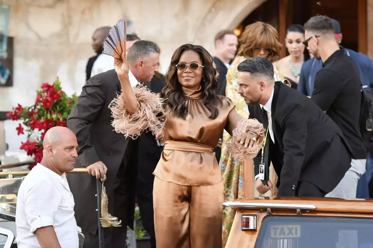 Oprah Winfrey arrives for the weekend wedding of Amazon founder Jeff Bezos and Lauren Sanchez, in Venice, Italy, Thursday, June 26, 2025. (AP Photo/Luca Bruno)
