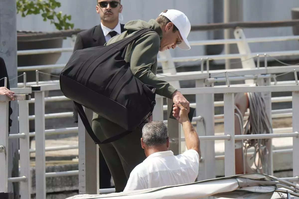 Orlando Bloom leaves his hotel, Friday, June 27, 2025 ahead of the anticipated wedding celebrations of Jeff Bezos and Lauren Sanchez. (AP Photo/Antonio Calanni)