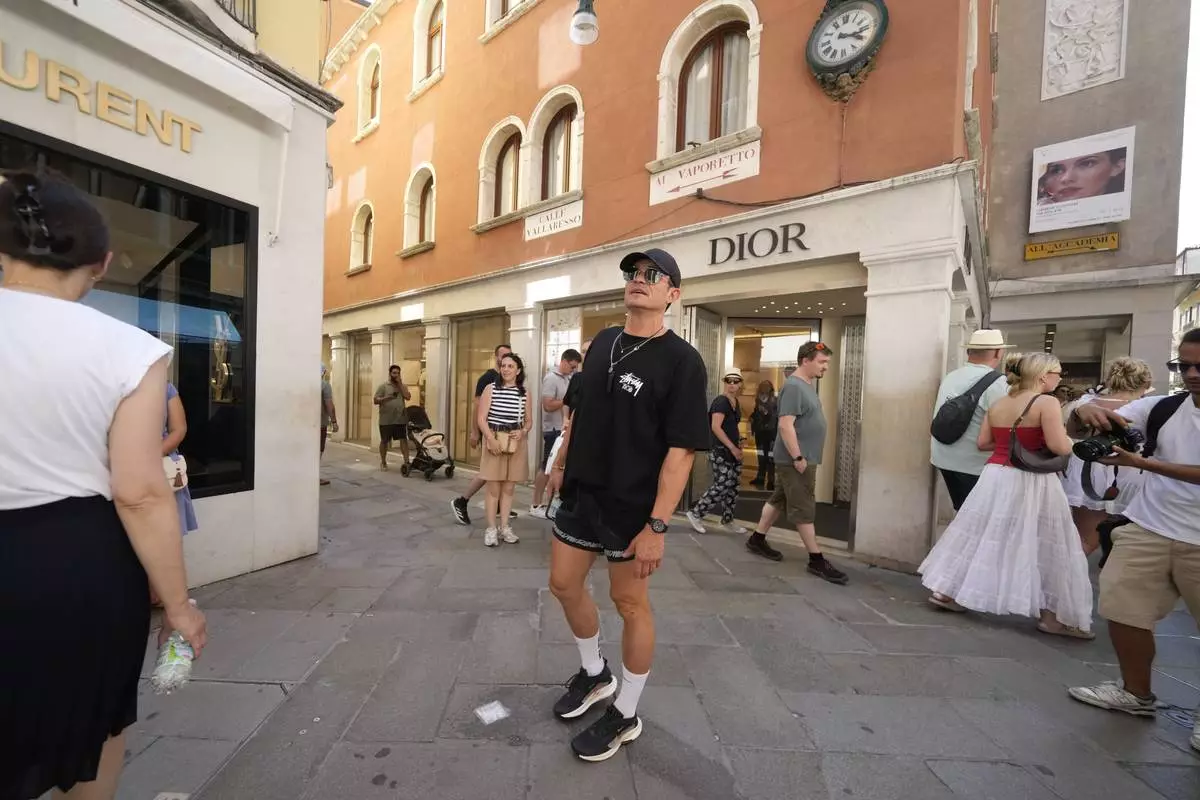 Orlando Bloom walks in Venice, Italy, on Saturday, June 28, 2025. (AP Photo/Luca Bruno)