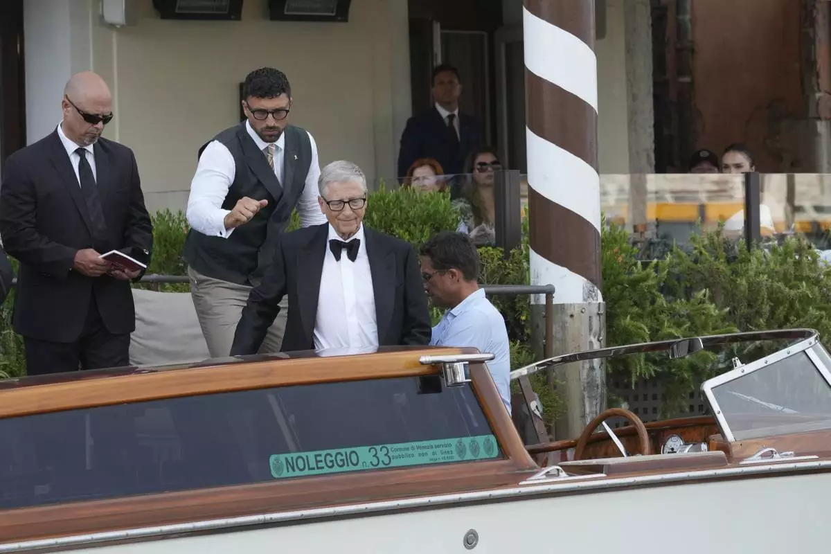 Bill Gates leaves a hotel ahead of the anticipated wedding celebrations of Jeff Bezos and Lauren Sanchez, in Venice, Italy, Friday, June 27, 2025. (AP Photo/Luigi Costantini)