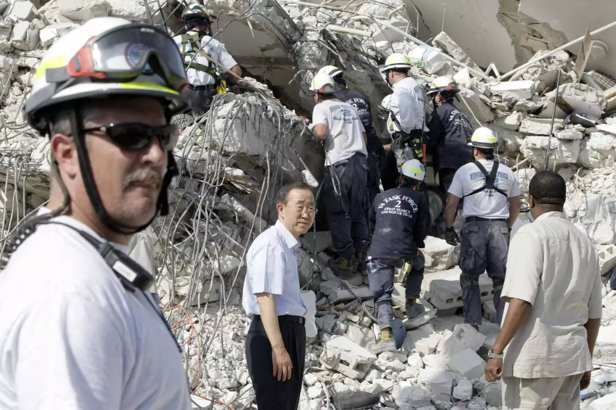Then-U.N. Secretary-General Ban Ki-moon visited the scene in Port-au-Prince days afterward.
