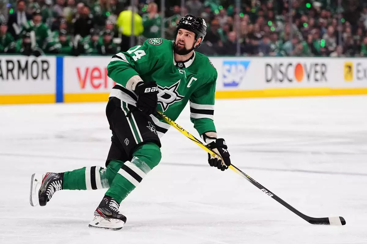 FILE - Dallas Stars' Jamie Benn (14) skates during the first period in Game 7 of a first-round NHL hockey playoff series against the Colorado Avalanche, Saturday, May 3, 2025, in Dallas. (AP Photo/Julio Cortez, File)