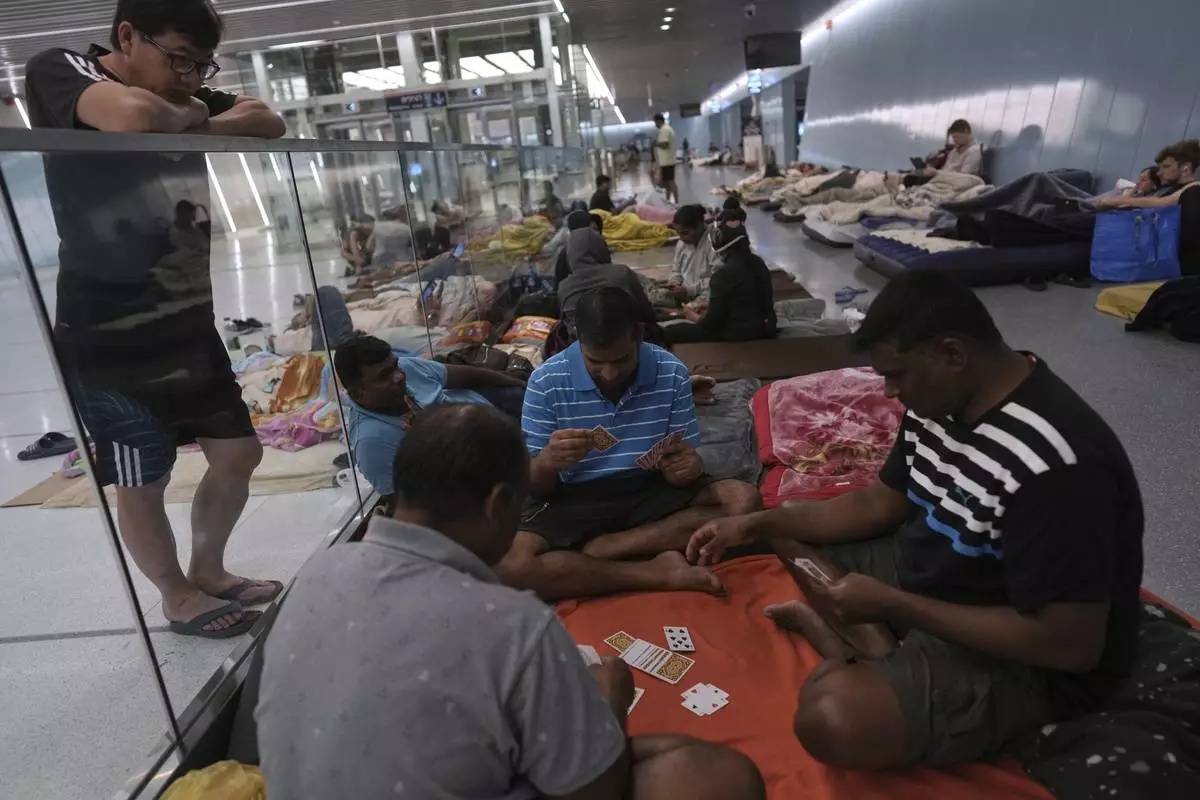 People rest and as they take shelter in an underground parking garage as a precaution against possible Iranian missile attacks, in Tel Aviv, Israel, Tuesday, June 24, 2025. (AP Photo/Ohad Zwigenberg)