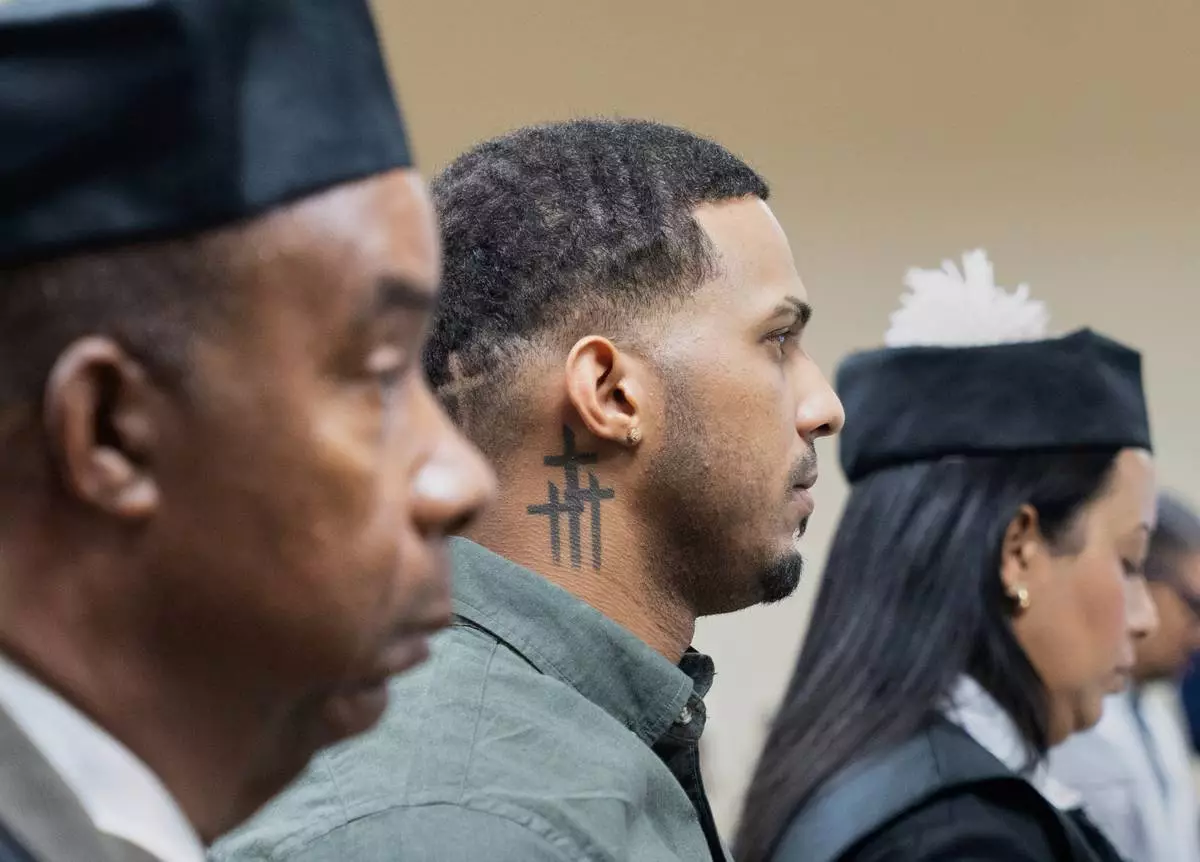 Tampa Bay Rays shortstop Wander Franco reacts after hearing his sentence during his trial on charges of sexual abuse of a minor, in Puerto Plata, Dominican Republic, Thursday, June 26, 2025. (AP Photo/Fran Afonso)
