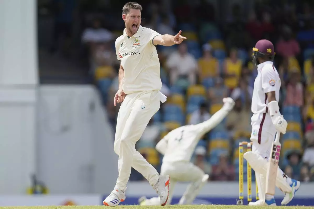 West Indies picked up its first innings on 57-4 and debutant Brandon King, 23 overnight, was dropped on 26 by wicketkeeper Alex Carey off Josh Hazlewood. But Hazlewood nailed King on the same score when the batter shouldered arms and was castled.