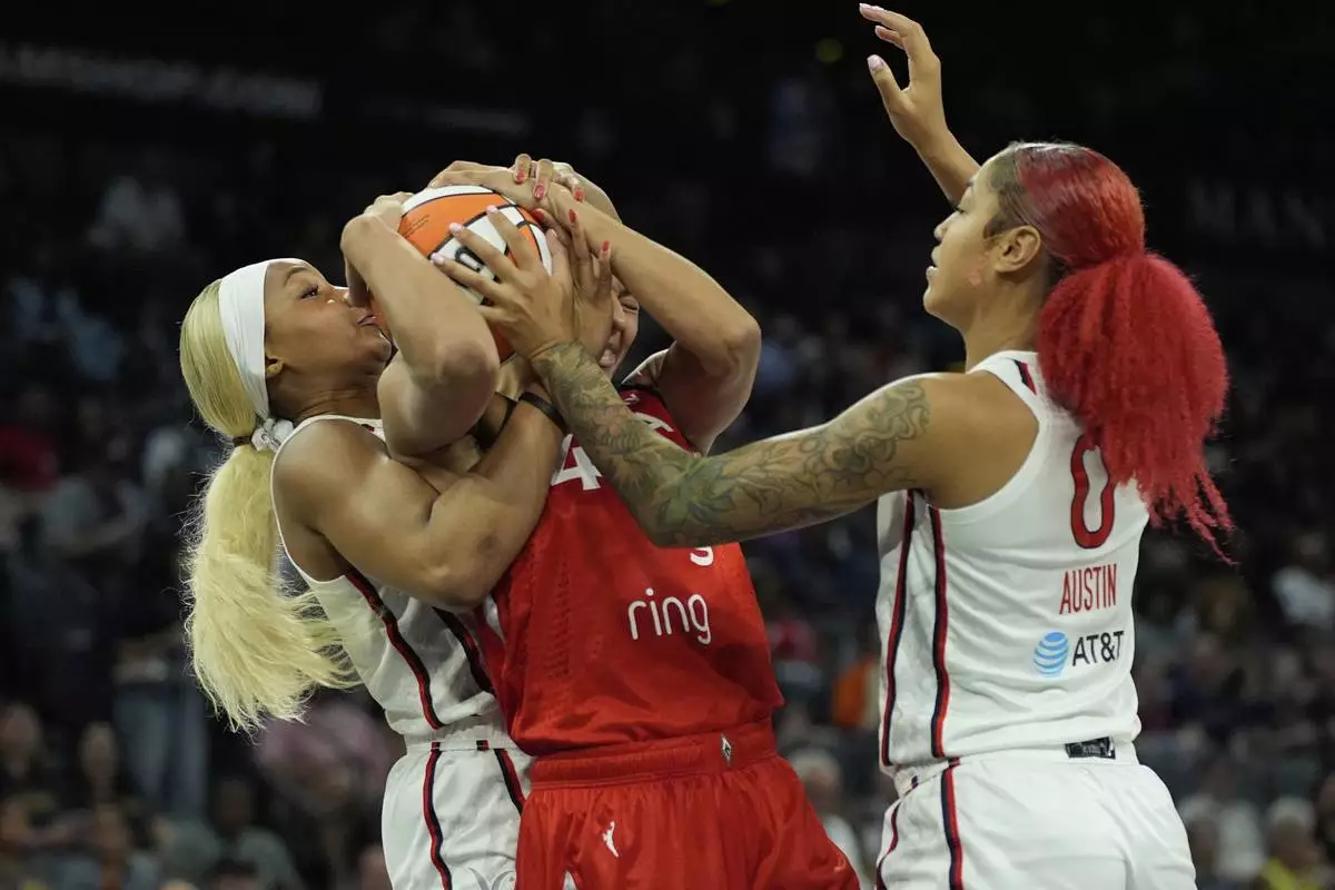 Las Vegas got back in it by scoring the first nine points of the fourth to cut the deficit to 79-70. The Aces twice got within seven points, the last at 87-80 before Austin grabbed an offensive rebound and put it in with 1:31 left.