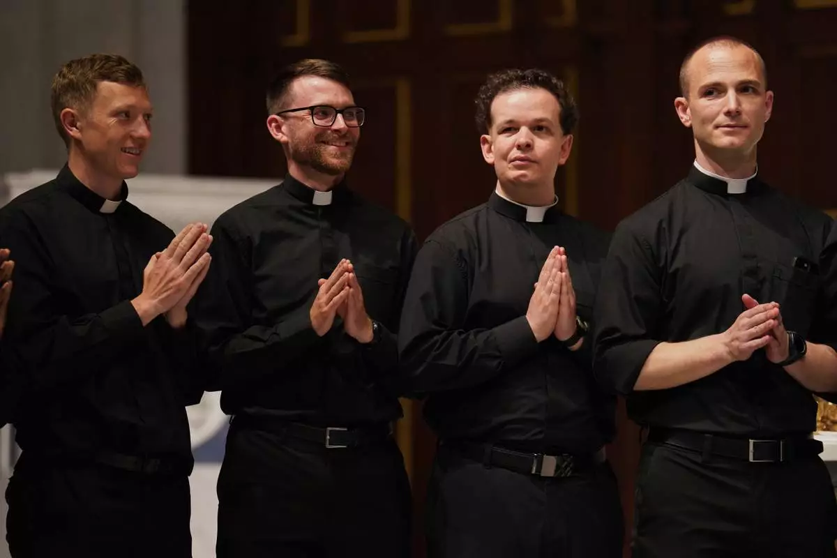 ARLINGTON, Va. (AP) — They are a day away from becoming Catholic priests, rehearsing for their ordination Mass under the gothic cathedral’s arches.