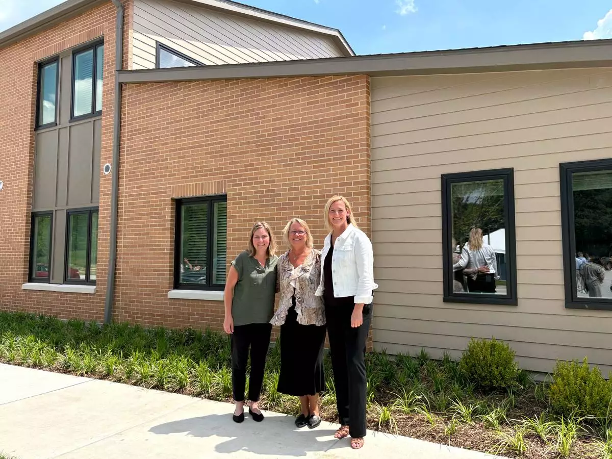 Katie Naftzger, Senior Vice President and Community Investment Officer at FHLBank Chicago; Stephanie Molster, Vice President at Village Bank & Trust; and Jane Drezen, Vice President at Village Bank & Trust, at the grand opening of Zion Woods Apartments in Deerfield, Illinois—an affordable housing development supported by a $625,000 Affordable Housing Program (AHP) grant from FHLBank Chicago.