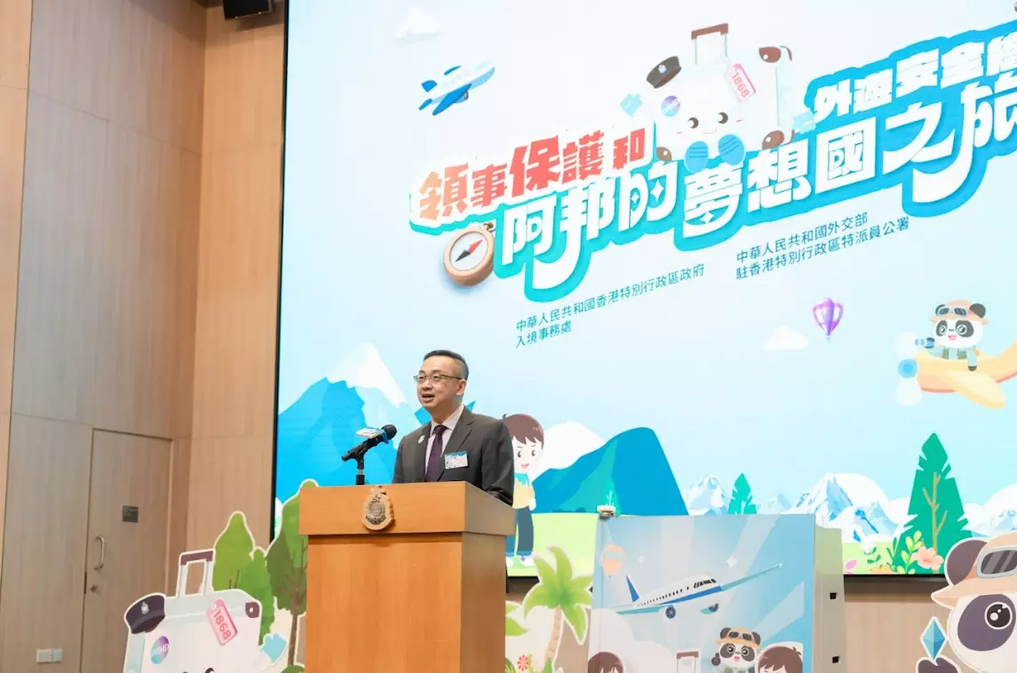 Speaking at the launching ceremony, Mr Kwok said that consular protection has always been the most solid backing for Hong Kong people travelling abroad. With the full support of the OCMFA and the Chinese diplomatic and consular missions overseas, the Assistance to Hong Kong Residents Unit (AHU) of the ImmD is committed to providing practicable assistance to Hong Kong residents in distress outside Hong Kong. At the same time, the ImmD attaches great importance to promoting outbound travel safety. Over the years, it has collaborated with the OCMFA from time to time to organise various publicity activities to raise people's awareness of outbound travel safety, while enhancing their understanding of national consular protection and the work of the AHU.