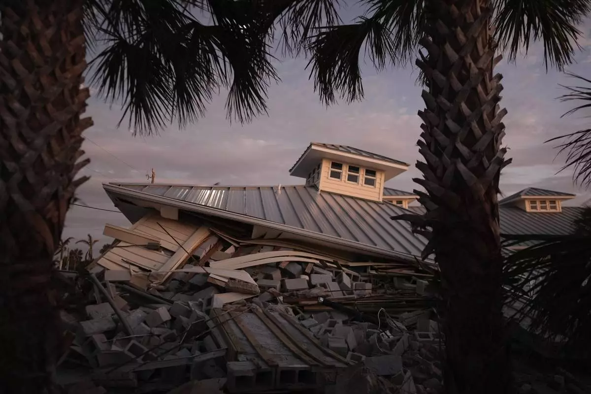 FILE - A collapsed building is visible after Hurricane Milton, on Manasota Key, Fla., Saturday, Oct. 12, 2024. (AP Photo/Rebecca Blackwell, File)