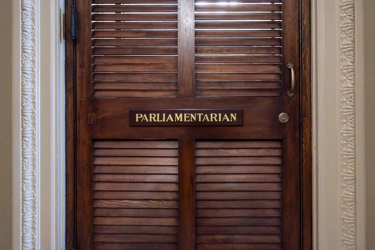 The office of Senate Parliamentarian Elizabeth MacDonough is seen at the Capitol in Washington, Friday, June 27, 2025. (AP Photo/J. Scott Applewhite)