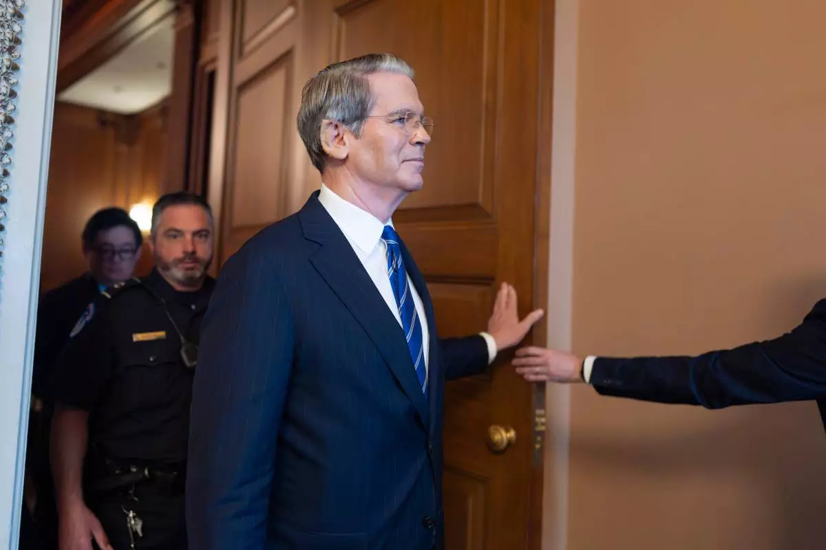 Treasury Secretary Scott Bessent arrives for a closed-door Republican meeting to advance President Donald Trump's sweeping domestic policy bill, at the Capitol in Washington, Friday, June 27, 2025. (AP Photo/J. Scott Applewhite)
