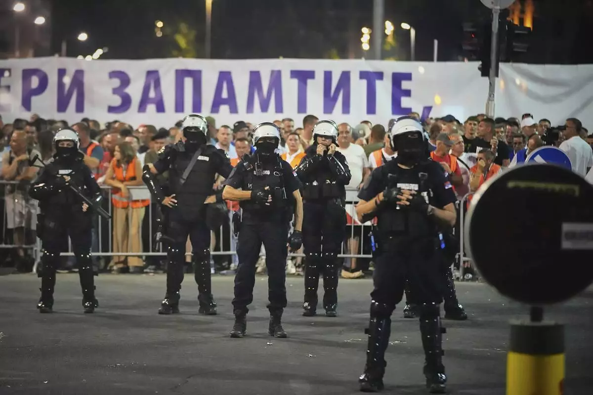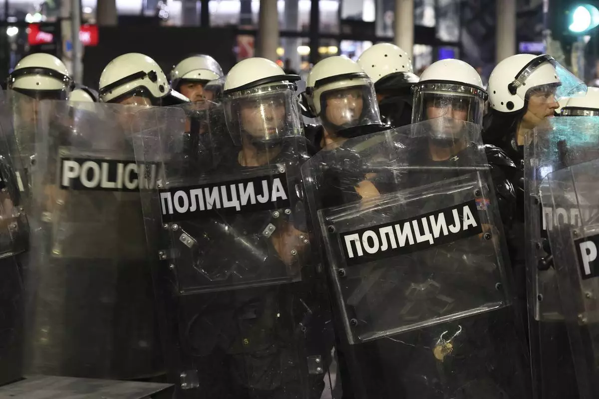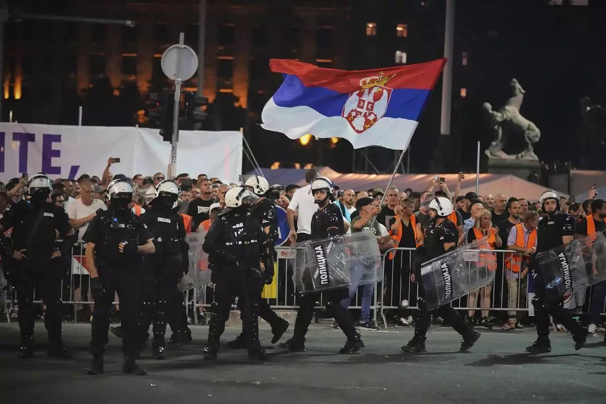 Serbia’s Interior Minister Ivica Dacic said participants in the protest attacked the police. He said police used their powers to restore public order and “arrest all those who attacked the police.”