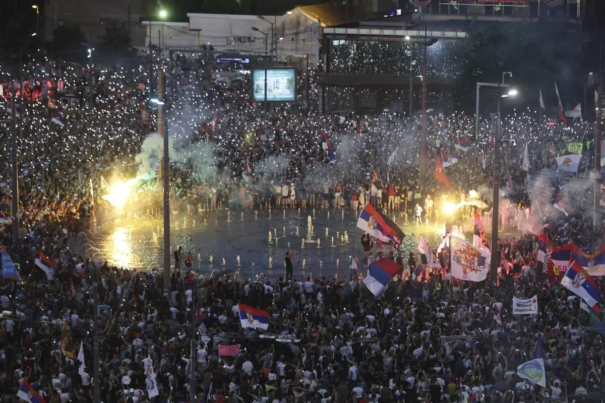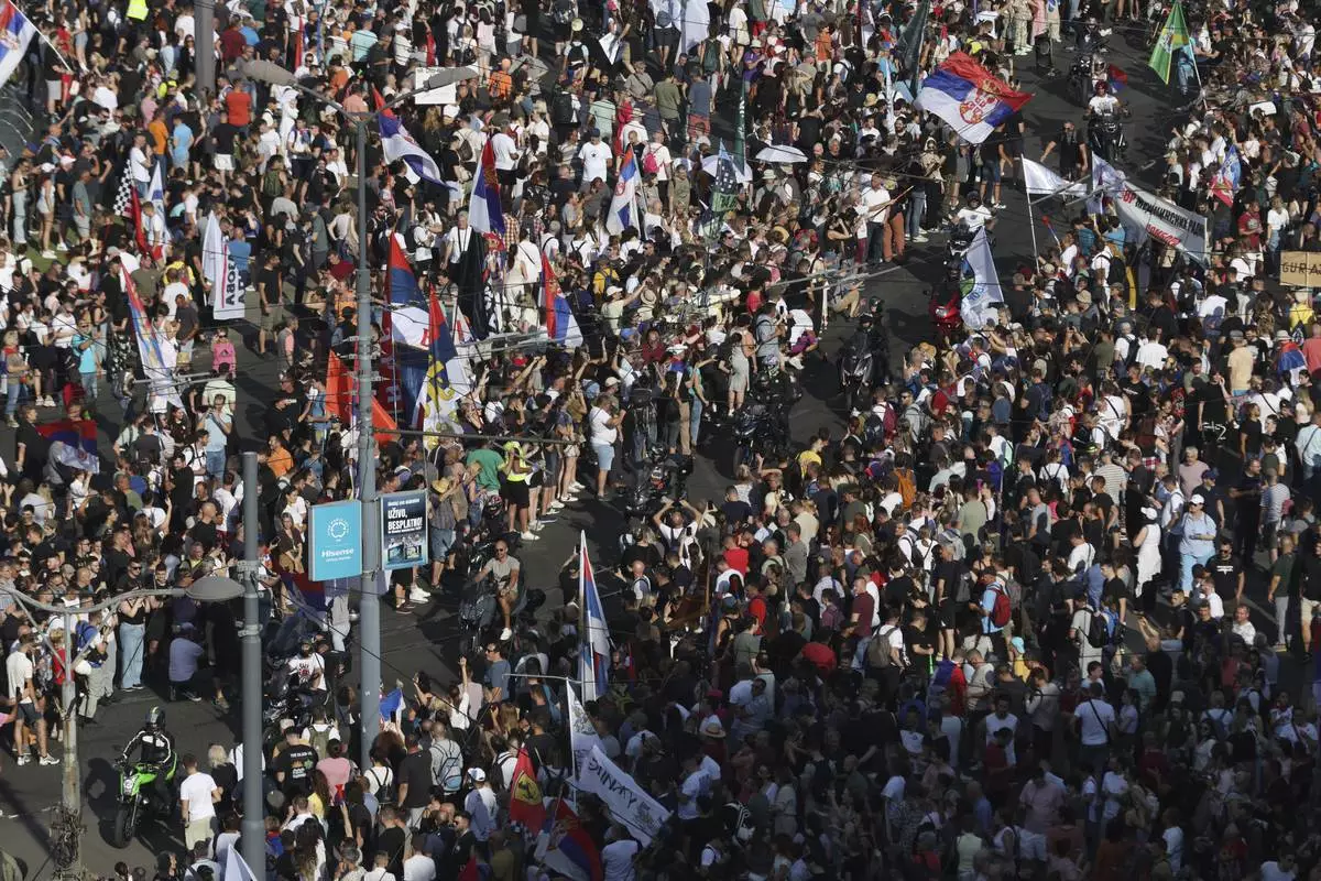 Serbian police, who are firmly controlled by Vucic's government, said 36,000 people were present at the start of the protest Saturday. An independent monitoring group that records public gatherings said around 140,000 people attended the student-led rally.
