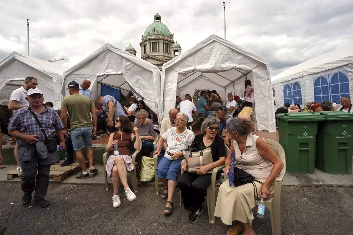 Hours before the student-led rally, Vucic’s party bused in scores of its own supporters to Belgrade from other parts of the country, many wearing T-shirts reading: “We won’t give up Serbia.” They were joining a camp of Vucic’s loyalists in central Belgrade where they have been staying in tents since mid-March.